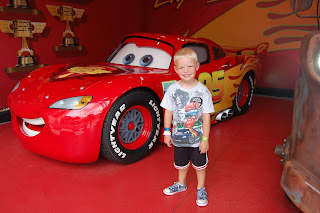 The stunt show was one of Landon's favorites. They showed us how they make movie scenes with car crashes, people jumping from bulidings, people/cars catching on fire, etc. Lightning McQueen even made his appearance!
